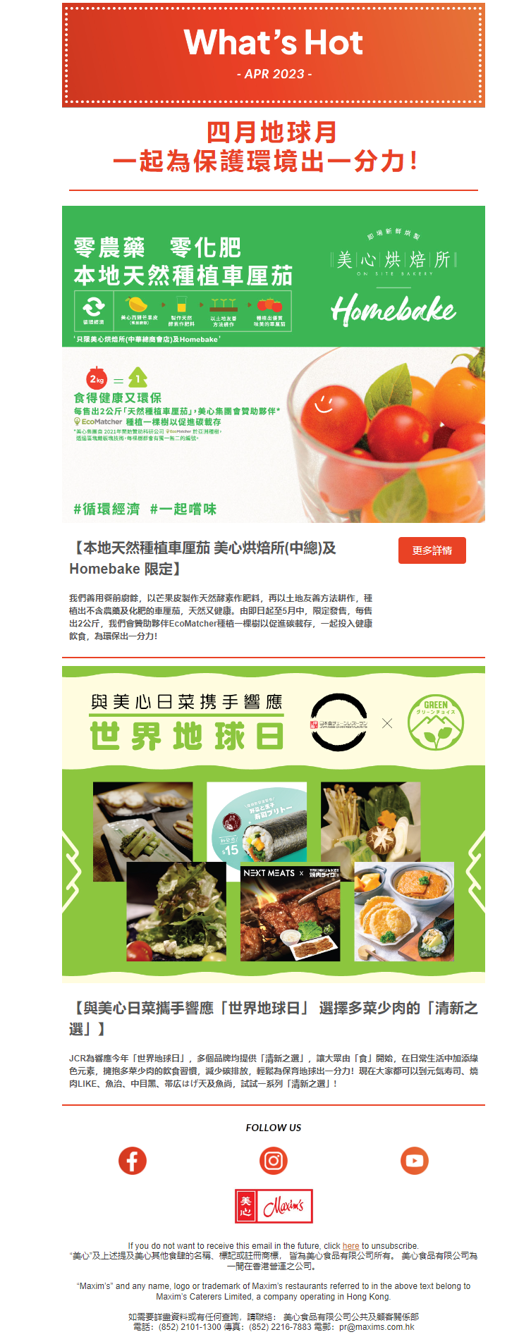 What's Hot - Maxim's Group | Earth Month 《四月地球月》 一起為保護環境出一分力!